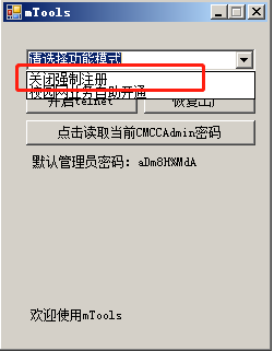 使用工具,配置。先解压包,选择mTools.exe,选中关闭强制注册。