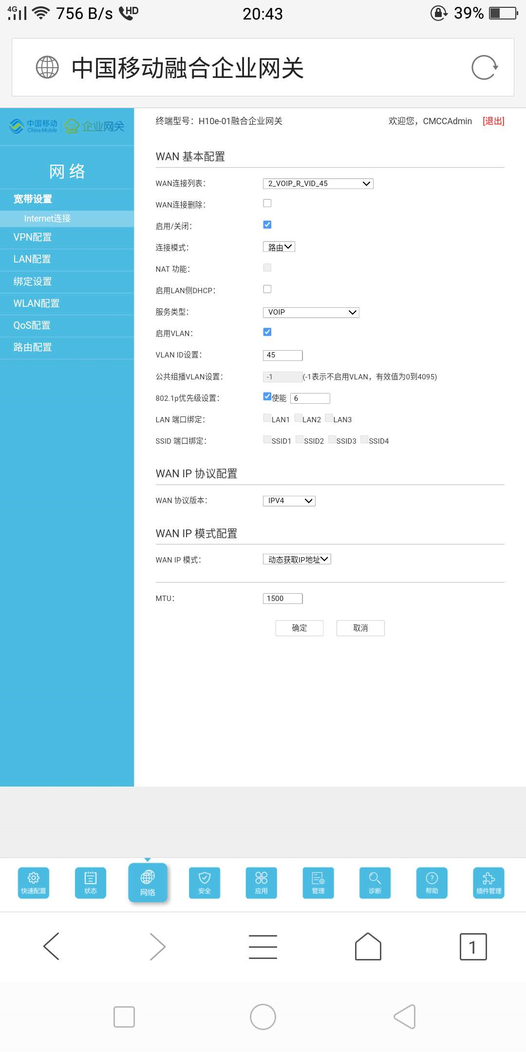 备注:请勿使用设备自带的公网接入ims语音,会导致语音不稳定掉话,必须使用此方法配置专网接入!