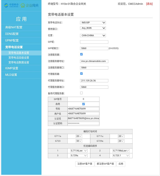 (H10e-01)专网开通ims和商务FTTB+LAN融合语音网关配置教程