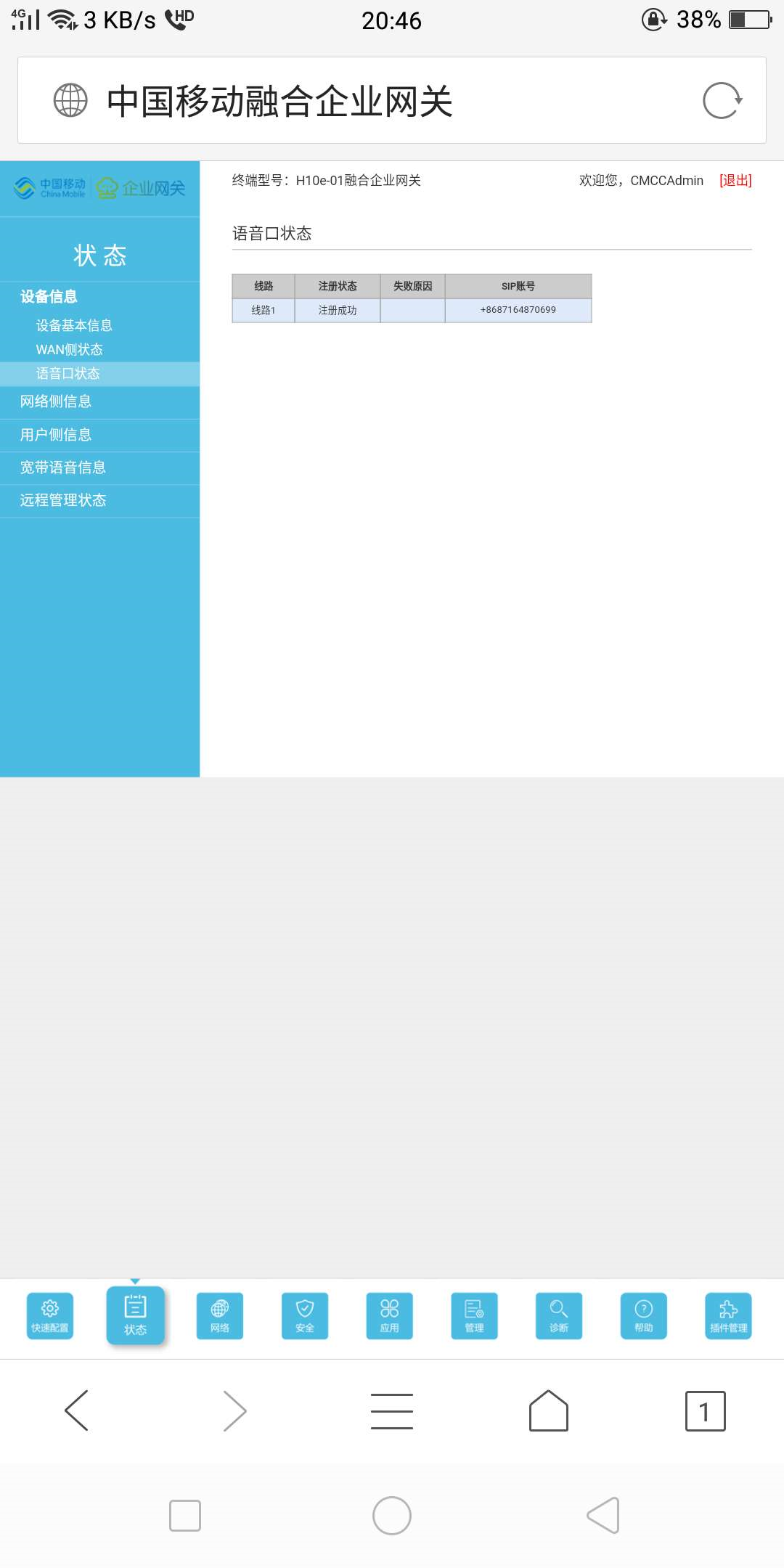 设备信息-语音口状态:注册成功