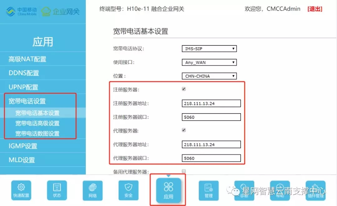 云PBX厂家开通的短号(酒店房间号)、注册密码、注册服务器地址及端口、代理服务器地址及端口